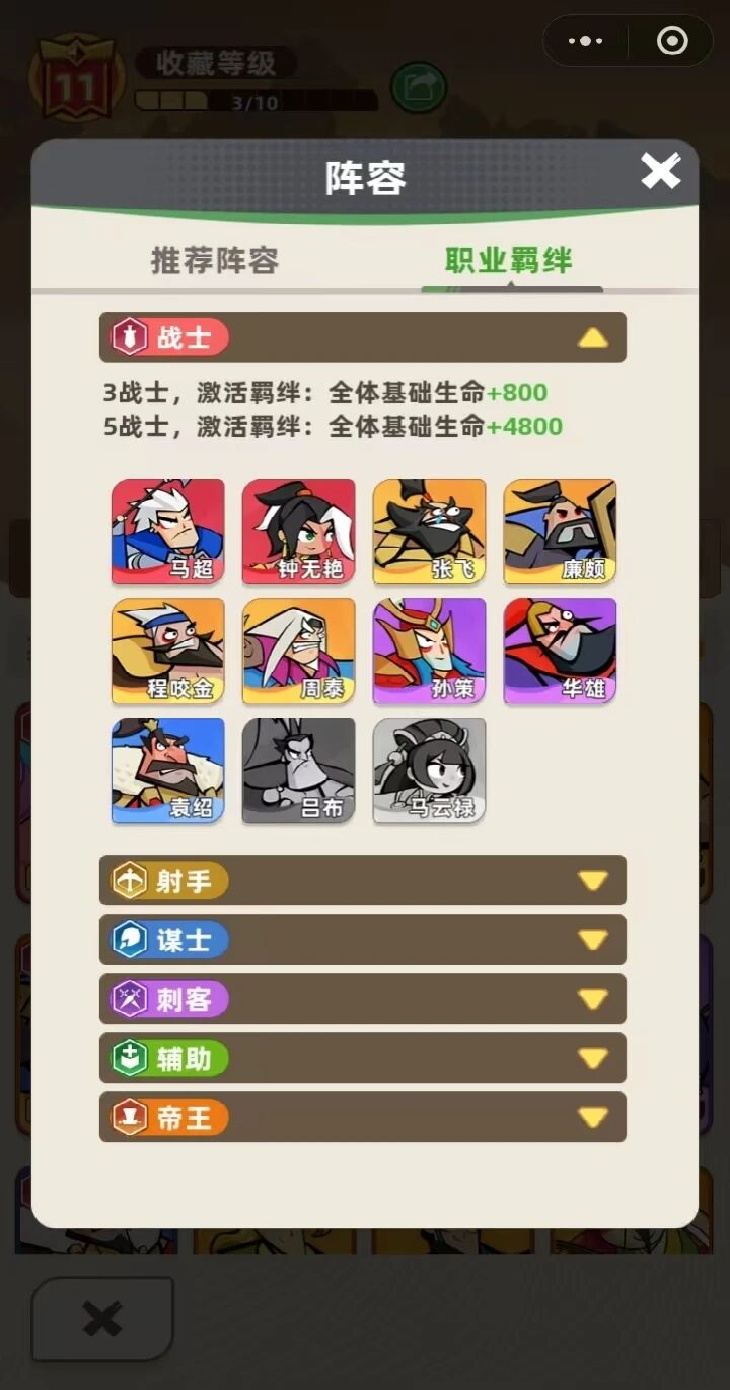 第一重策略性搭建,围绕易上手、易理解规则。前文我们提及,《王者之弈》玩家初期对局仅允许玩家以射手阵容进行对弈,从3射手组合到5射手。随着段位提升,才解锁其他相关职业及职业英雄。同时,整个对局过程并不拖沓,残局阶段加入自动加速战斗,避免垃圾时间。玩家解锁了所有阵容之后,就出现全职业羁绊显示。所有职业(除帝王外)全部遵循3羁绊与5羁绊。羁绊生效条件的通用,降低了玩家对阵容接触及定向成本,作为策略性友好的第二层表现。