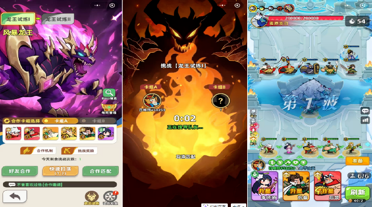 活动板块,《王者之弈》基于玩家段位进行解锁。但是,活动难度上,非付费玩家并不容易完成。目前已知模式主要分为野区挑战及龙王试炼。野区挑战以玩家牌组为准,每轮7人上阵闯关形式进行;而龙王试炼为双人模式,由当周分配的职业阵容进行。双人模式的龙王试炼,既包含陌生匹配,也包含好友自定义通关。然而,《王者之弈》并未针对社交进行适当的挖掘,以及玩法协作的特色,整体趣味度性为中等。