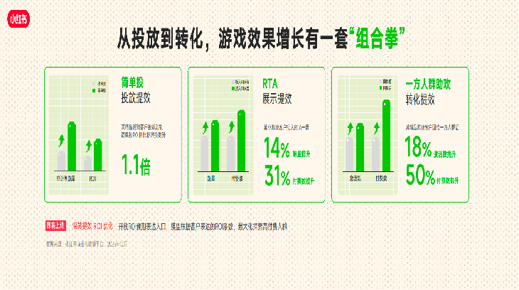 效果已有验证:某精品游戏使用“简单投ROI”两周效率提升1.1倍;某小游戏接入RTA后一周付费数增长31%;某客户通过一方人群投放,激活数与付费数分别提升18%和50%。这些数据背后,是“找对人-接得住”的产品化能力在持续释放效能。