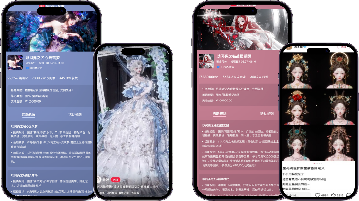最后,产品借势国庆节点,结合小红书 “游乐园公主风穿搭” 的平台趋势,打造#假日穿搭大事件,并携手小红书平台趋势「放假计划」推出定制化合作内容,将游戏时装与大众热点、外部IP深度绑定,最终实现从圈层渗透到破圈引爆的传播跃迁。
