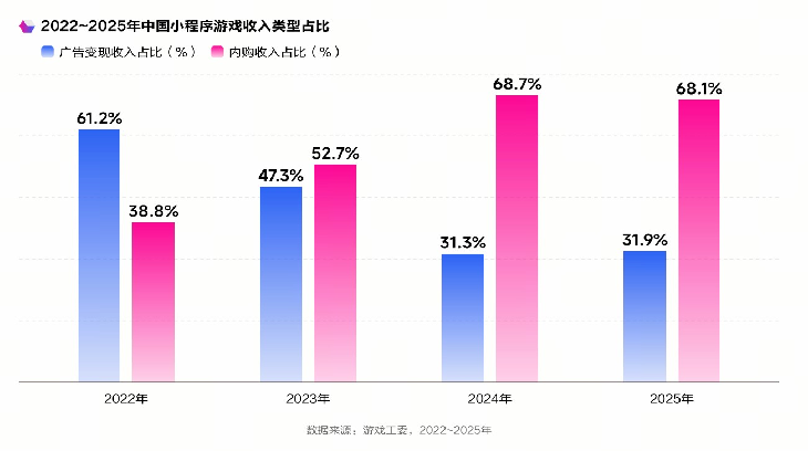 首先,是平台话语权的急剧攀升。2025年抖音小游戏的整体市场份额已逼近30%,相较于2023年实现了超10个百分点的跨越式增长。在这个正处于上升周期的赛道里,抖音以高增速吃下了大盘主要的扩张红利,正式成为小游戏商业化落地的绝对主场。