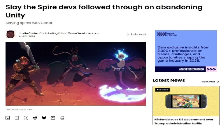 前年Unity引擎闹出“安装量收费”的闹剧时,很多开发者敢怒不敢言,或者只能私下抱怨。但Mega Crit当时公开甩出一封信,直接指着鼻子骂,并且硬生生地把开发了两年多的《杀戮尖塔2》项目给停了,壮士断腕般地将整编代码转移到了开源的Godot引擎上。