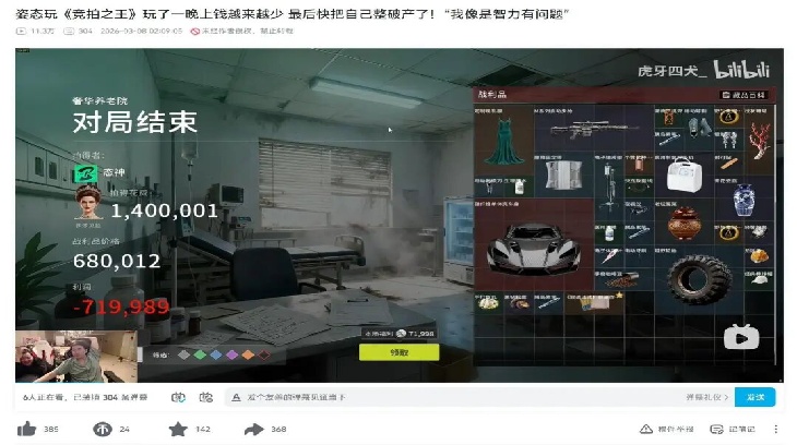 在国内社媒上,游戏的热度相比其体量也显得很夸张。B站上大量《竞拍之王》的直播切片,播放都突破了十万: