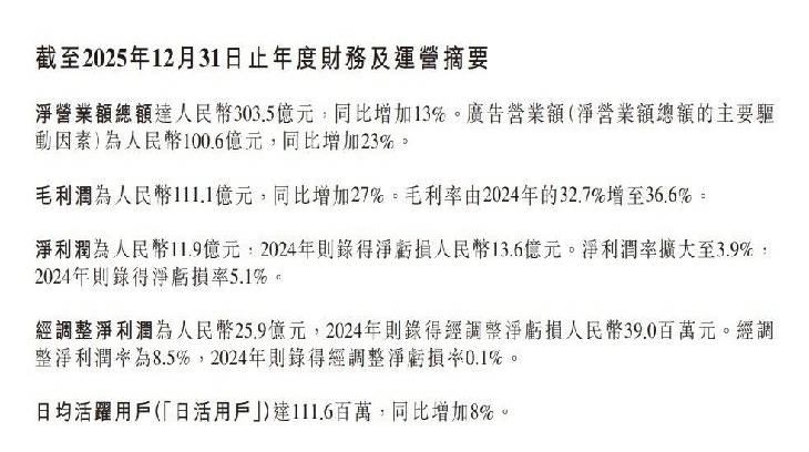 近日,B站发布了2025年全年财报。数据显示,这家陪伴无数年轻人成长的社区平台首次实现全年盈利——全年总营收突破300亿元,调整后净利润达25.9亿元,标志着其商业化路径进入新阶段。
