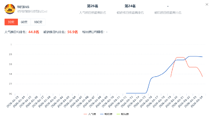 《我的防线》在3月12日首次进入畅销榜,随后排名稳步提升。截至24日下午,《我的防线》小游戏在微信小游戏畅销榜位列第25名。