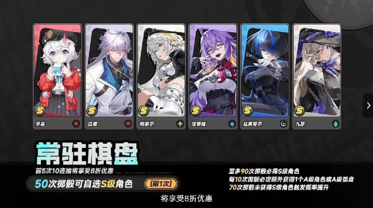 《异环》这次最有讨论度的机制之一,就是限定池不歪,保底到了就是当期UP。而抽卡表现还做成了一个大富翁/棋盘形式,投骰子、走格子,不是单纯点一下出金。