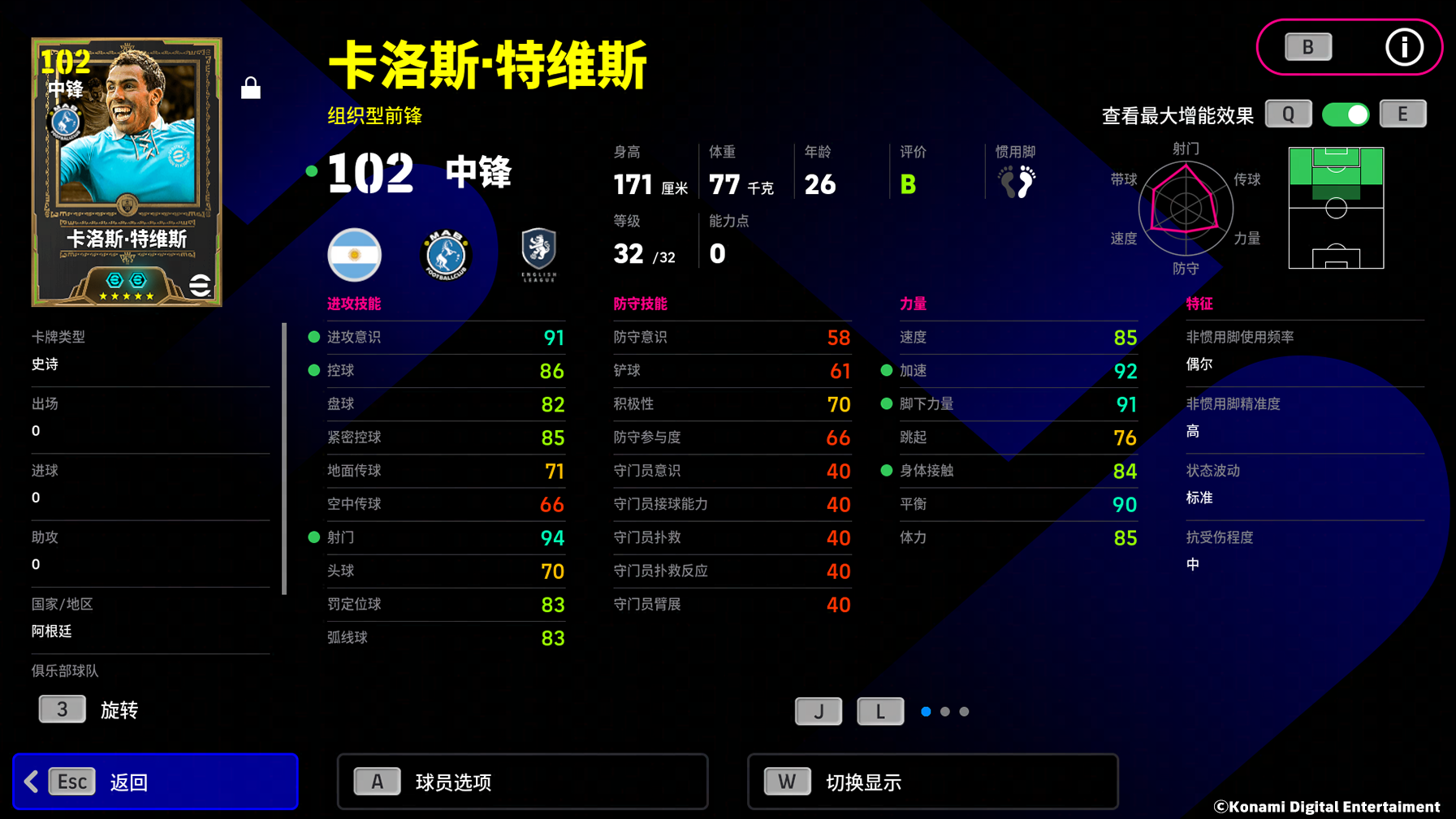 特维斯在【攻门+3】的增能属性加持下,其射门如出膛炮弹般势大力沉!他还拥有【无定型传球】的特殊技能,配合【组织型前锋】的比赛风格,特维斯在回撤接球时视野开阔,时常能为前插的队友送出手术刀般的直塞!