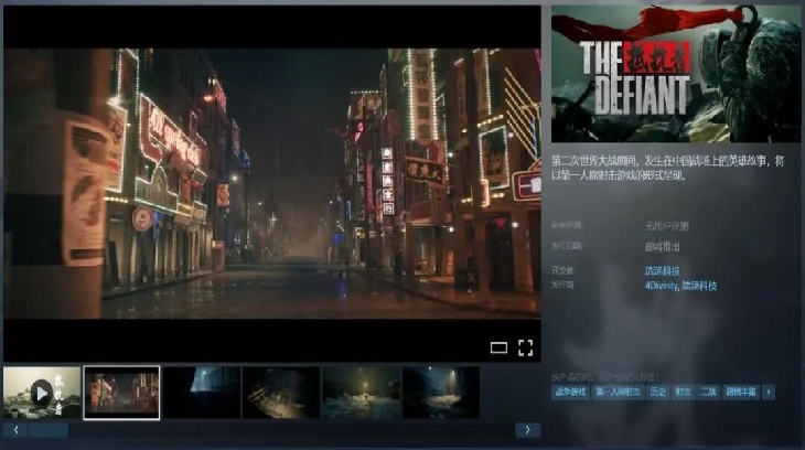 《抵抗者》(The Defiant)走的是另一套产品化思路。Steam页面显示开发者为浩汤科技,发行为4Divinity,发售日期同样待定。它被反复强调的卖点,是在第一人称射击的底子上加了谍战、解谜等混合要素,用更任务化的结构来承载体验。发行层面的合作关系也有正式披露。
