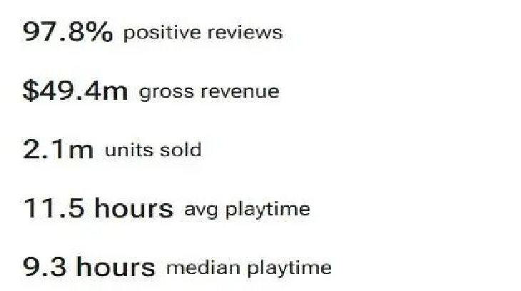 目前仅Steam渠道,游戏销量已突破200万份,累计流水估算值已接近5000万美元(约合3.5亿人民币):