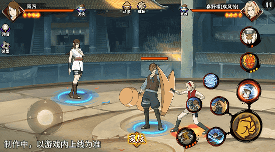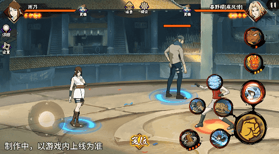若在不同队友释放二技能后使用一技能,可以触发不同效果。在光司的砂严拳命中并击飞敌人后释放一技能,雨乃会瞬身到空中,使用医疗水遁·水螳螂俯冲斩击。