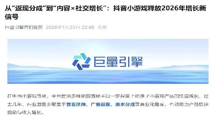 小游戏不再只是流量承接工具,竞争重点也随之转向。对开发者而言,这是一次降低试错成本的窗口期,也是一次明确的分水岭,只有具备持续增长能力的产品,才能在新的激励体系下跑得更远。