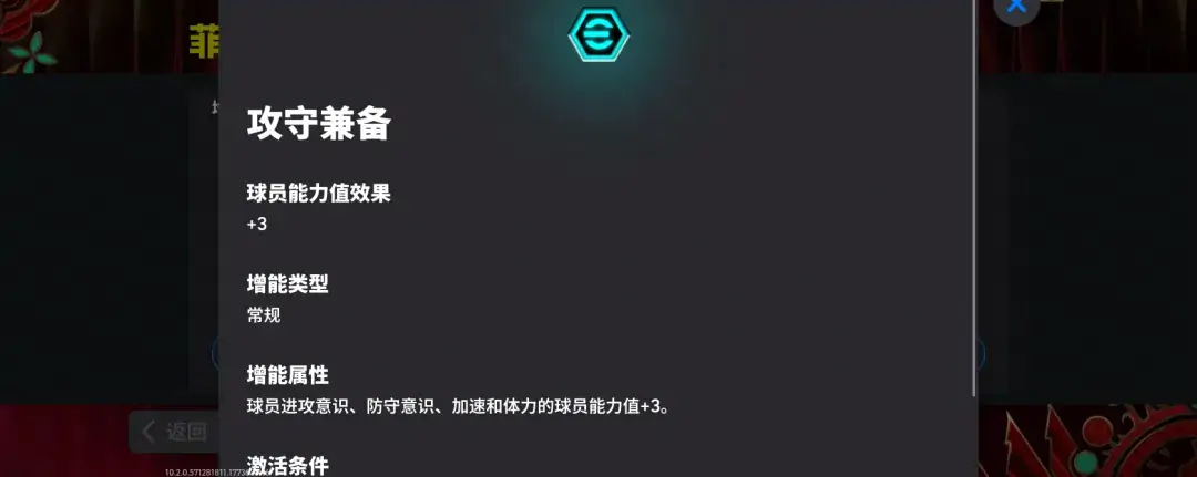 均衡的防守数值搭配【后防领袖】特殊技能