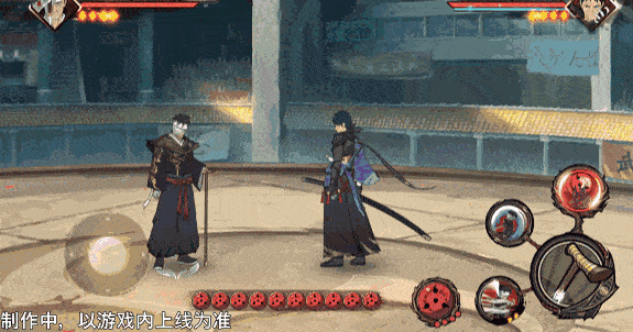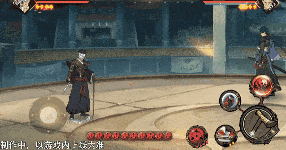在屏幕下方有10颗写轮眼,场上的标记则代表漂泊团藏3秒前的位置,脚下的箭头会永远指向3秒前的位置。