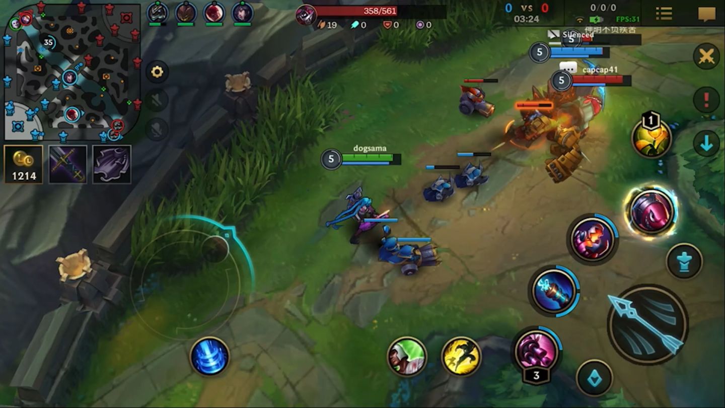 整体上《英雄联盟》与《王者荣耀》的战斗界面没有什么大的改变,左上角是地图,右下角是攻击,左下角是移动,右上角是对局信息。