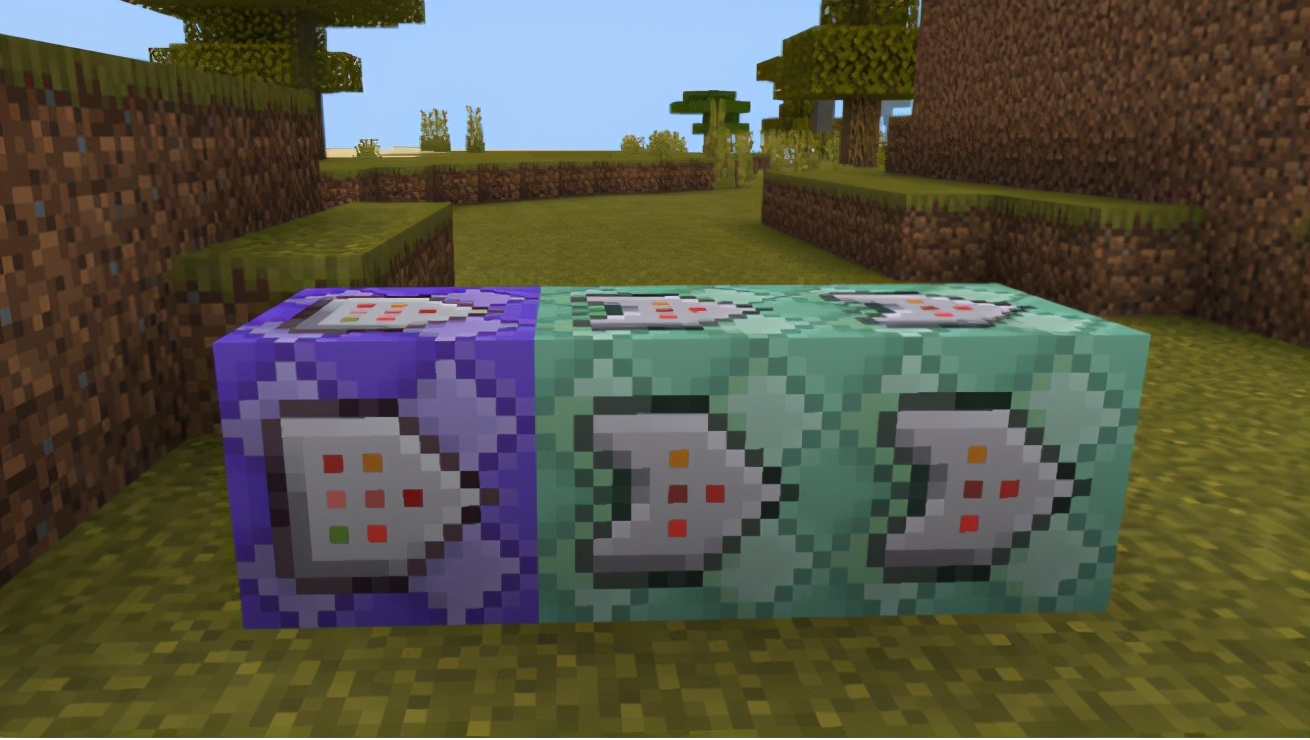 高效开坑木镐,按照惯例,小官微首先在对话框里输入,/give @s command_block,获得今天的主角命令方块,制作这把镐一共需要3个命令方块,我们按下图所示摆放好它们,要注意命令方块上箭头的指示方向哦~