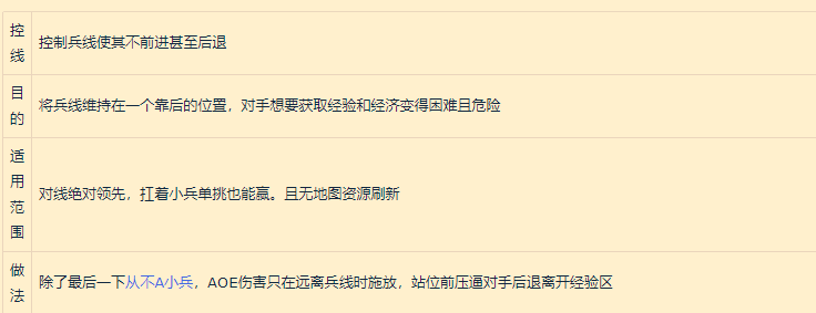 属于最为令人难受的压制方式,由于屯着敌方小兵未击杀,一旦死了直接血亏,属于高风险高收益攻击对手心态的打法。易被对手多人针对,慎用。