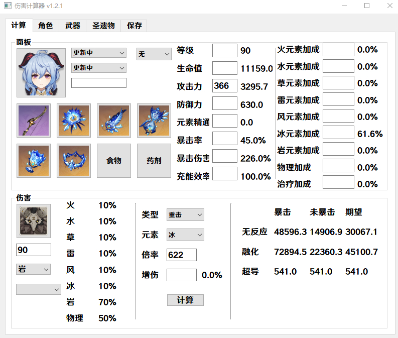 默认人物武器普攻天赋满级,圣遗物设定条件为冰4爆伤头,副属性分配为每个圣遗物5%攻击+15%爆伤,总计加25%攻击和75%爆伤。这个属性摸着良心说已经是大部分平民的极限了,反正我自己是做不到。
