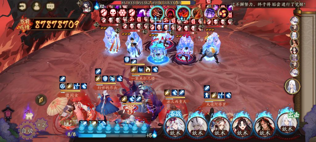 整体配速如下,清麓千缘修,全自动,肯操作的话,可以麓丸普攻一下吸血姬,那她除了第一波清姬有可能反击之外,其他时间安静如鸡,还有就是椒图连线比较影响伤害,分摊之后土蜘蛛的伤害就低了。