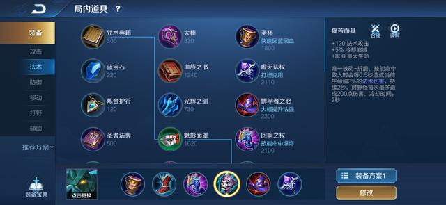 解析:墨子经过好几次削弱,其AP加成伤害并不高,非常依赖装备的被动伤害,且2技能的控制很强,所以冷缩比法术攻击收益更大。建议大家前期先出个小圣杯回蓝,再出一双冷静之靴游走,然后补全圣杯达到30%的冷缩,这时候续航能力爆表,尽情的清线游走即可。
