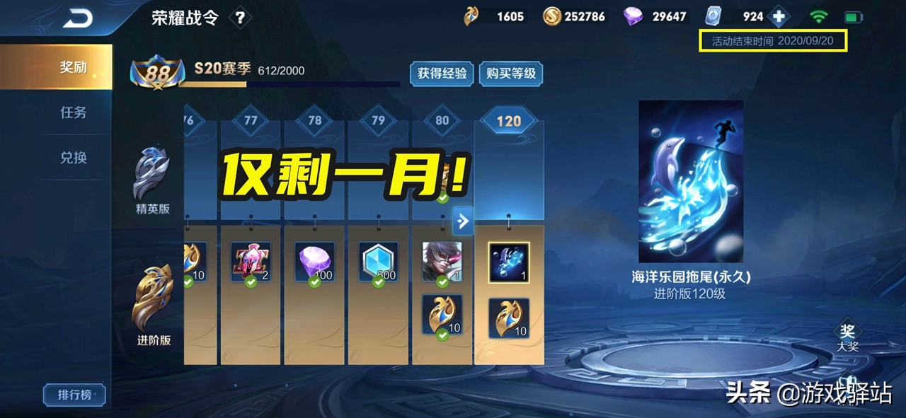 距离王者荣耀S20赛季开启已过去一个来月时间,在部分玩家还在烦恼如何快速升星拿到王者印记的时候,下个赛季即将到来,是的!你没看错,S20荣耀战令将在9月20号结束,刚好剩下1个月时间!