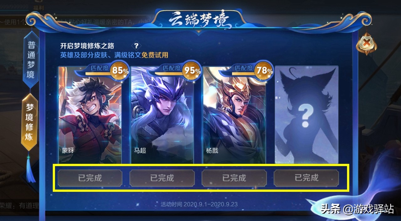 梦境修炼之路活动重启,想必大家在更新后第一时间进行了英雄选择,不过令人意外的是这次活动出现了无法参与的情况,即英雄选择按钮显示“已完成”(未拥有该英雄也提示已完成),小编使用大小号分别参与后发现并非所有玩家都是如此,其中小号开启修炼之路还能查看梦境和自定义英雄,针对这个问题,官方表态已在定位修复中,大家还需耐心等待!