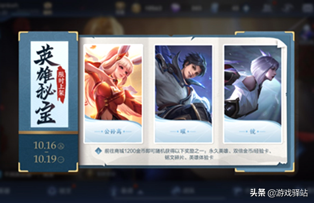 三、许久没有出现的1200金币英雄宝箱再次上架,此次加入宝箱的英雄为镜曜姐弟和公孙离,都属于操作难度较高的英雄,感兴趣的玩家可消耗金币抽取!