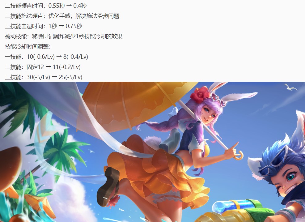 公孙离加强:1/2/3技能CD减少,2技能硬直时间缩短,连招更顺畅。大招控制时间缩短0.25秒,移除印记爆炸减少1技能CD的效果。整体来说,本次调整降低了公孙离的上限,间接提高了公孙离的输出。