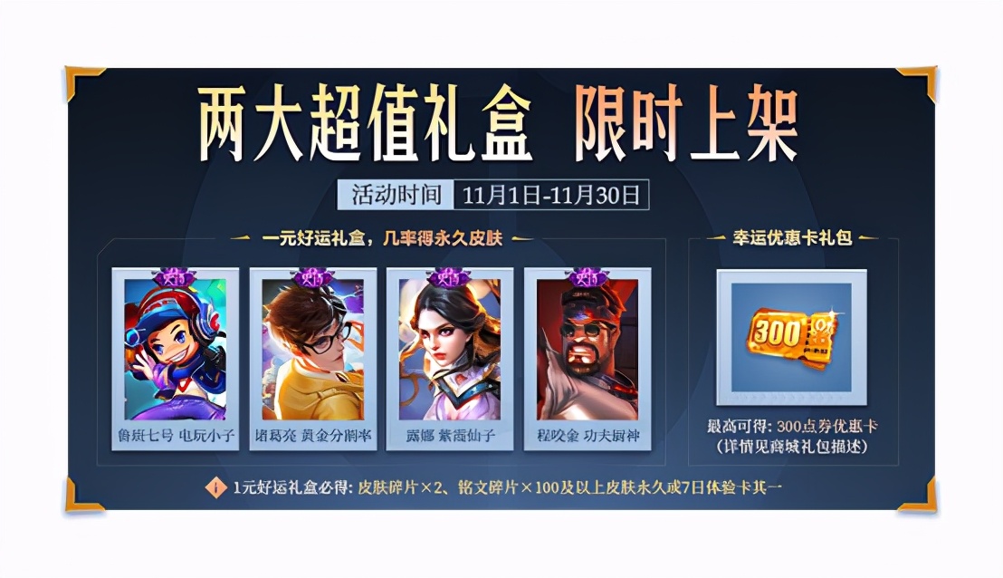 2、全英雄/直售传说皮肤限免(10.28和11.1)