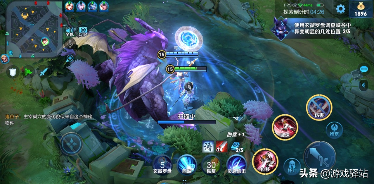 探索时点击“灵影刻印”后会在屏幕中出现蓝色能量特效,若找到准确位置就会触发与鬼谷子的对话,为了方便大家能够快速完成任务,小编查探后发现四处地点全部集中在对抗路,分别是对抗路第一座防御塔的拐角处、蓝BUFF处、主宰龙坑位置和对抗路边上的两处草丛(1塔之间),另外这次任务大家还可以点击左上角的相机按钮拍照留念,同时完成任务可获得峡谷探秘礼包和40铭文碎片,前者开启后便能得到峡谷探秘永久荣耀播报。