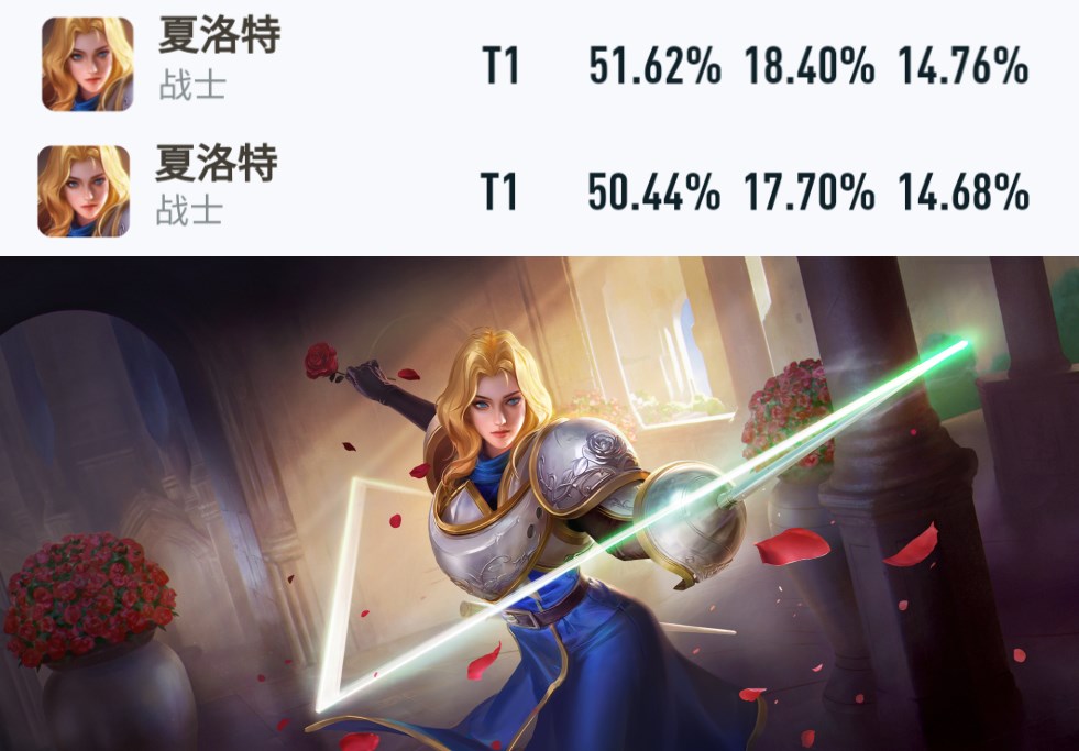 夏洛特由于降低了被动和大招的免伤比例,排位胜率从51.62%下跌至50.44%,但在边路线上依旧强势,团战能力比之前稍弱。(最上为更新前的数据,中间为更新后的数据)