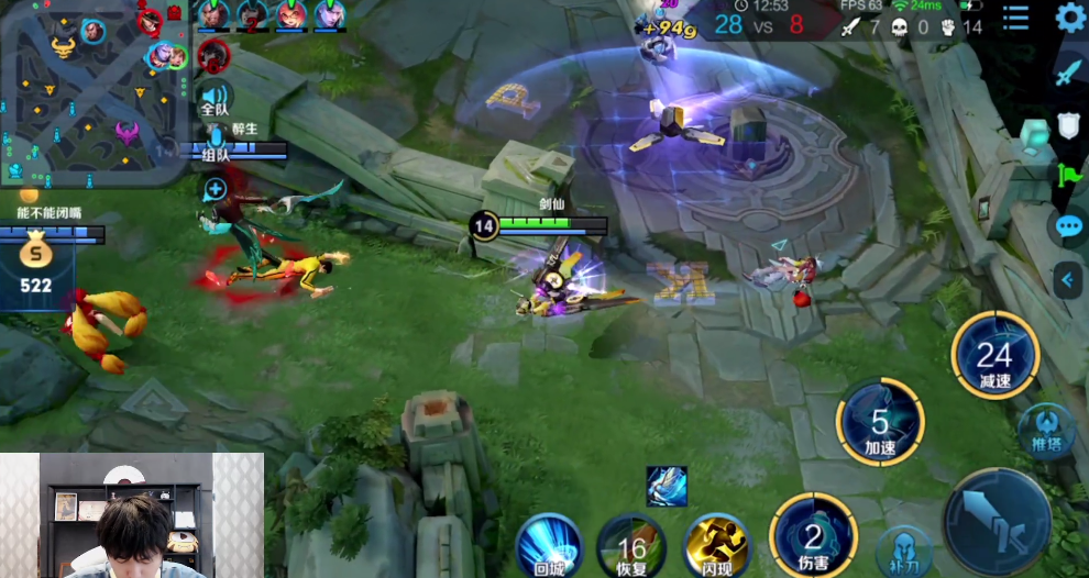 在用孙膑的时候,剑仙也是闹出了一个小笑话,毕竟平时没怎么玩,所以对技能不是很熟悉,在使用了几次2技能之后发现自己没有回血就一直追问队友:为什么人家的孙膑要回血,我的这个不回血啊,队友有的叫他看技能,还有的直接说因为你没被打啊,剑仙还以为他是在调侃,仔细阅读技能才发现确实是这样,因为这个回血是时光倒流机制,要在技能生效的时间内被打才会回血,这才让他恍然大悟。