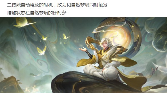 庄周加强:免控被动和伤害被动改为同时触发,新增被动触发计时条,以便于玩家清楚的知道免控被动和伤害被动的触发时间,一定程度上降低了庄周的上手难度。