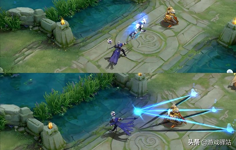 因为杨戬新皮肤为60点券福利皮肤,所以局外登场动作与经典皮肤一致,局内全技能特效也以变色为主(蓝色激光),1技能释放的机器狗让人眼前一亮!