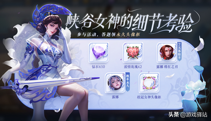 二、参与女神考验活动可领取钻石、浓情玫瑰、露娜体验卡和桂冠女神头像框奖励,其中第四档奖励除了必得头像框外,所有玩家还有机会免费获得永久露娜,据悉这次官方送出100W个露娜,抽取概率还是蛮高的!