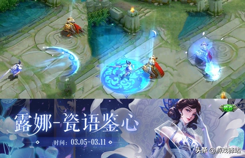 露娜瓷语鉴心的出场动作与原皮一致,局内特效则以蓝色为主色调,且技能和普攻释放伴随有蓝色花瓣洒落效果,被动、1技能和2技能释放后会在地面出现青花镂空纹路,小编觉得作为勇者皮肤,瓷语鉴心的特效很好看,具体手感还得等5号上架体验后才知道,具体如下图所示: