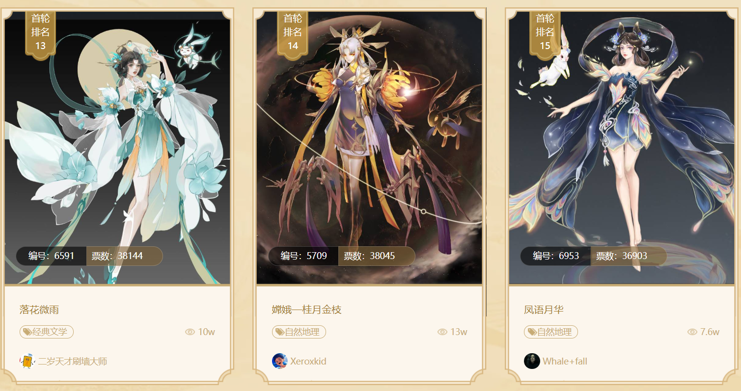 排名13~15的作品:分别带有清新、威压、羽翼的元素。