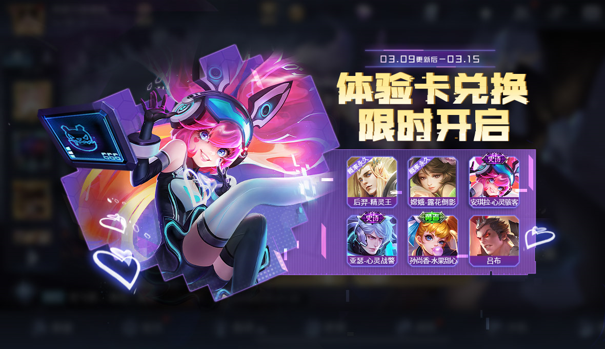 安琪拉与亚瑟的情侣皮肤体验卡上架体验卡商店,没有该皮肤的玩家可以前去兑换,而兑换小礼包则有0.1%的概率抽到后羿的精灵王或嫦娥的露花倒影。