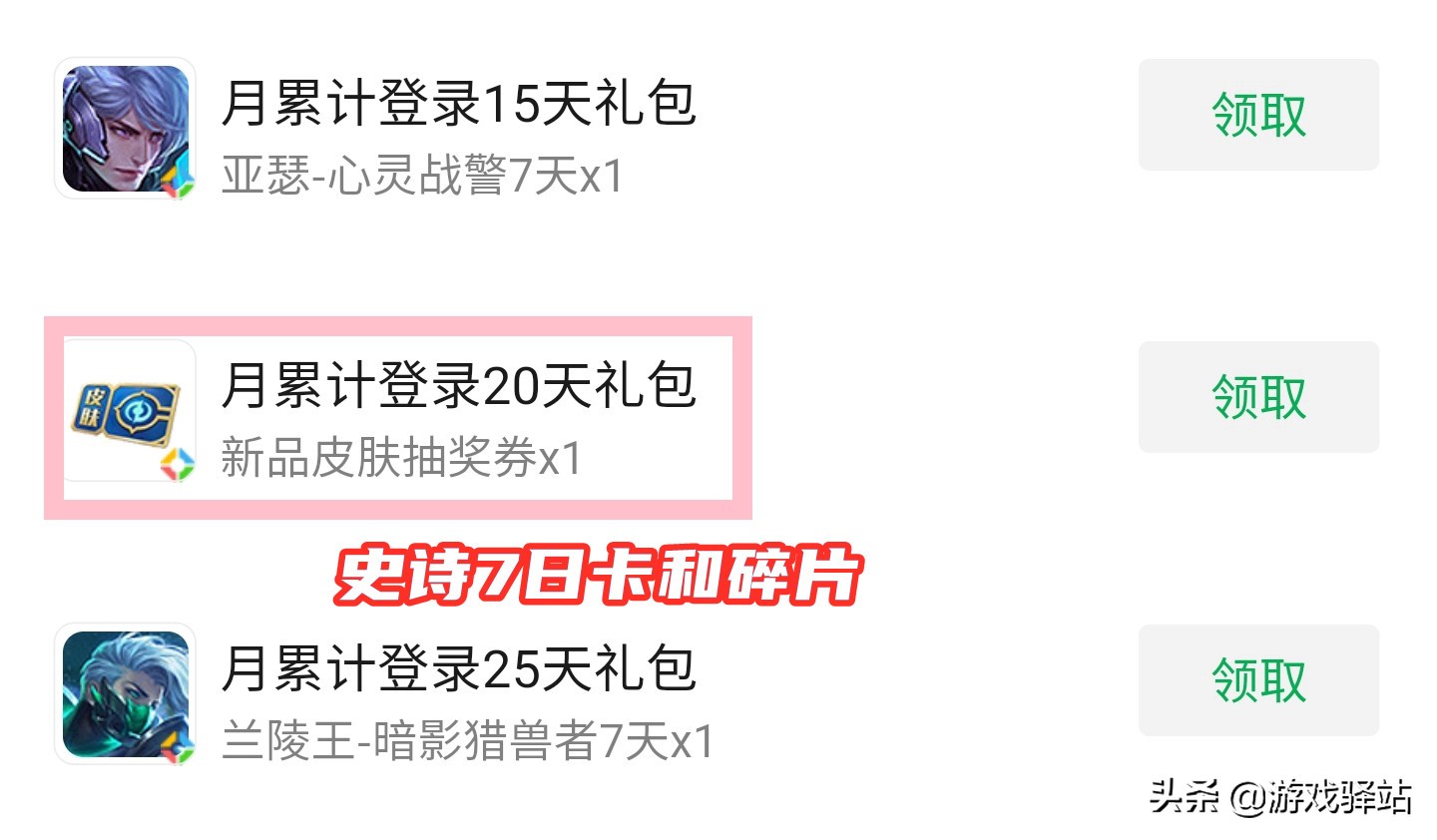 四、微信和手Q区玩家皆可通过游戏专区完成月累计登录任务,领取两款史诗皮肤7日卡和一张新品皮肤抽奖券,史诗皮肤有兰陵王暗隐猎兽者、亚瑟心灵战警和吕布末日机甲等,而皮肤抽奖券同样可以兑换成皮肤碎片。