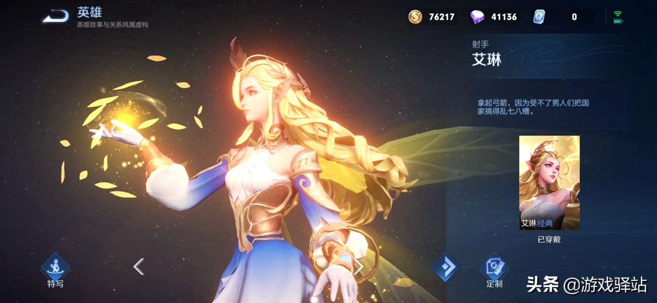 不只是排位赛界面更改,本次更新后重做艾琳重新上架,这次官方更新了艾琳的特写镜头和上线了半身像封面,金发、尖耳、翅膀和白蓝裙子的搭配,让新艾琳看起来更符合精灵公主的形象,通过封面可以看到新版艾琳海报美翻了有木有!艾琳特写镜头的实装和海报的更新,预示着这位重做英雄即将降临王者峡谷,通过知情Po主爆料获知,艾琳的获取方式将和夏洛特一样有多种方式免费得到,比如金币、王者水晶或参与活动任务获得,总之会在下个赛季与小伙伴们正式见面!