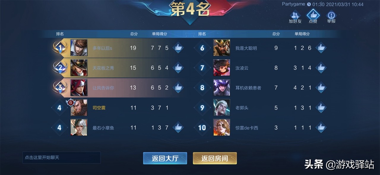 另外这次更新的重头戏是官方正式上线了全新玩法—派对大作战,玩家可通过大厅左下角的按钮进入参与,该模式有三种组队方式,分别是系统自动匹配、玩家开房间自行邀请好友和面对面对战,新模式最大的特色是玩法10选3,不仅有大家熟悉的王者快跑等玩法,还新加入了躲避女娲大招、火球击退等新模式,小编体验之后发现每种模式的时间并不长,基本两三分钟就能结束一局,符合娱乐模式节奏快的特点!