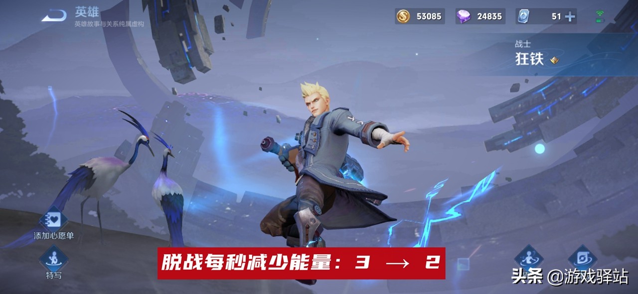 狂铁,狂铁才在两个月前提升了强化普攻追击距离,或是强度依旧不符合预期的缘故再次喜提优化,小编觉得狂铁的弱势主要与不稳定的能量有关,官方应该也是注意到这个情况,这次更新后下调了狂铁脱战减少的能量值,简单理解就是避免提前积满的能量过快耗光,保障进团后能打出强化伤害。