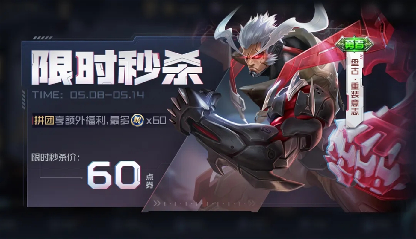 盘古的重装意志将在5月8日0点限时上架一周,首周折扣60点券,属于勇者品质且限定。
