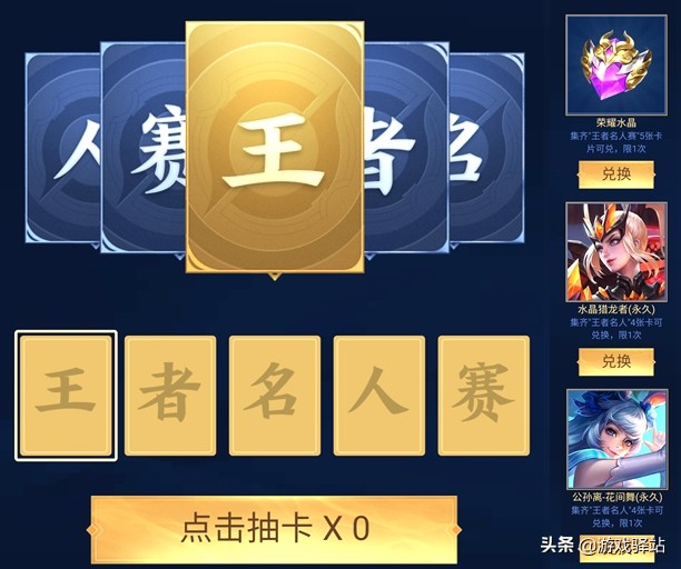 除了腾讯游戏年会福利外,王者荣耀官方还新开启了王者名人赛集卡活动,仅限手Q区玩家参与,此次活动的参与方式极为简单,玩家完成签到、参与对局、赠送卡片等任务获取鲜花和抽卡机会,其中鲜花可以送给喜欢的明星选手助力,而抽卡机会可用来抽取“王者名人赛”的文字卡片,只要集齐一定数量的文字卡片即可兑换相应奖励。