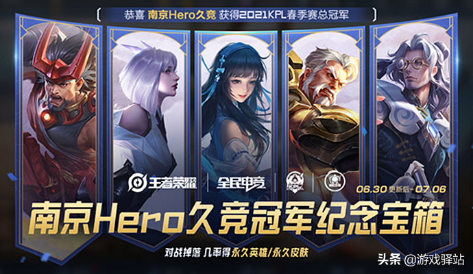 三、30号更新后,所有玩家参与对局可获得南京Hero久竞冠军纪念宝箱,开启后有机会获得廉颇、镜、西施、黄忠和鲁班大师五位永久冠军英雄,以及这五位英雄的皮肤,分别是廉颇地狱岩魂、镜冰刃幻境、西施归虚梦演、黄忠芝加哥教父和鲁班大师归虚梦演,该宝箱每日最多获取3个,最多有21次机会抽到永久英雄/皮肤。