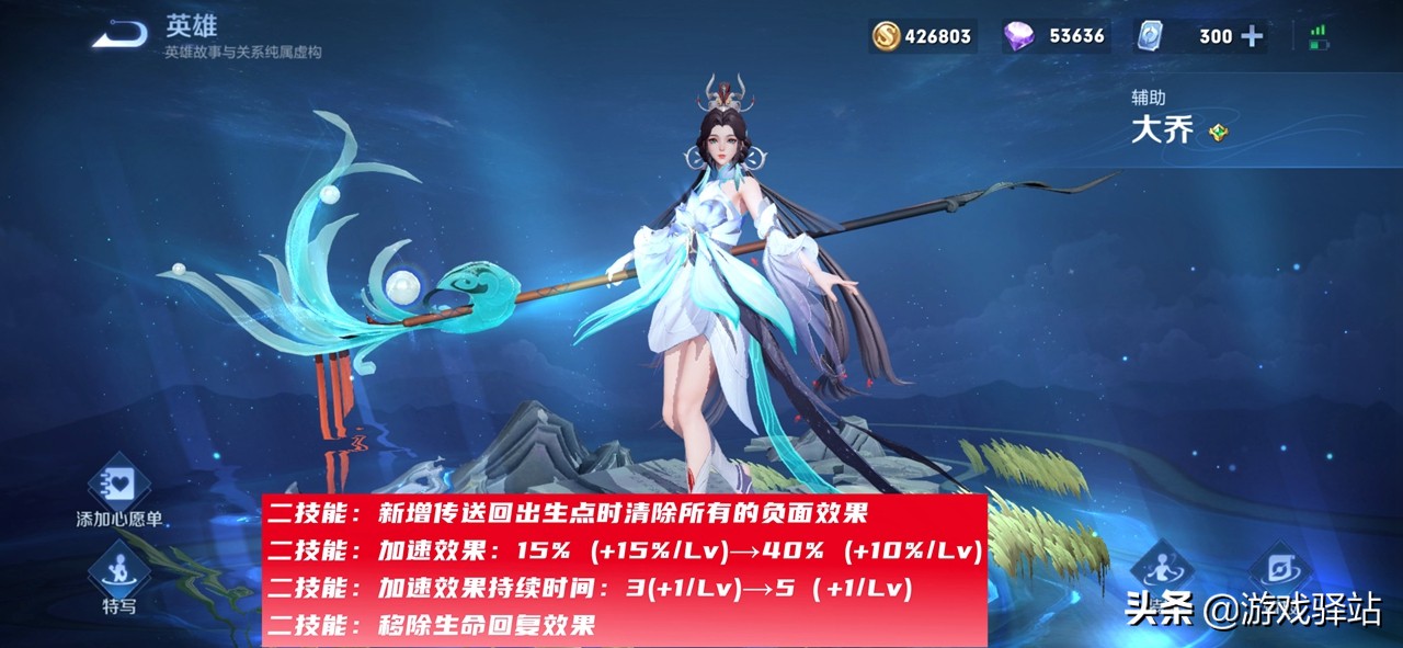 大乔平调,虽说“乔离”组合在上一次的调整中被削弱,但大乔体系依旧难以反制,为此官方决定对其进行再次调整,只不过这次直接移除了2技能的回血效果,作为弥补增加了回城后清除所有Debuff的效果,以及提升了2技能移动速度和加速效果时长。简单理解就是能与大乔2技能配合的阿离、李白和芈月这类组合被削弱,而对于其他英雄来说是加强向调整,特别是身上挂着扁鹊持续伤害印记的英雄,且24连招的机动性有所提升!