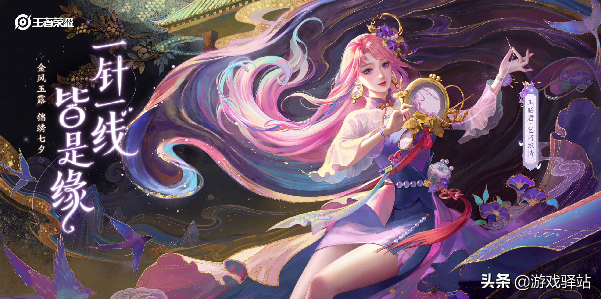 王者荣耀正式服将迎来8月份的第二款传说——王昭君乞巧织情,新皮肤海报和模型特效一经公布后,大家讨论最多的就是海报问题,其实王昭君七夕皮肤除了目前已经公布的海报外,还有一款坐着刺绣的海报,如下图所示,相较于官宣海报,小编倒觉得这款的气质,更符合局内模型和皮肤人设。