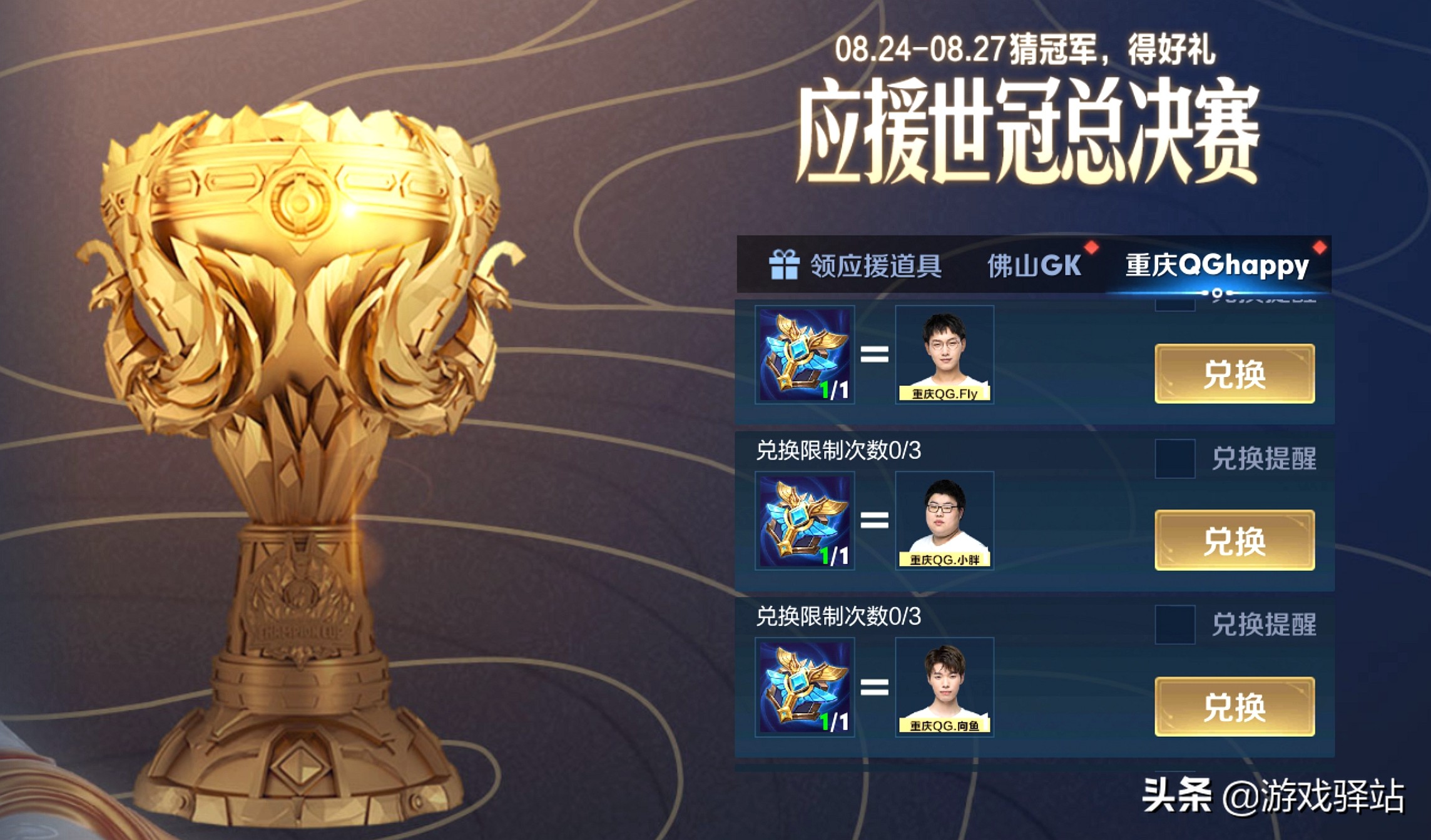 了解完嫦娥皮肤,我们再来看看世冠总决赛应援道具兑换推荐!