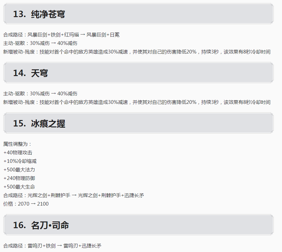 破碎圣杯调整:价格增高,冷缩增高,法攻降低。
